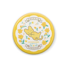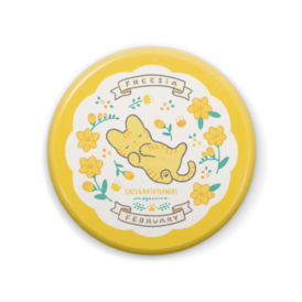 缶バッジ - 57mm【猫と誕生花:2月】 ✿フリージア ✿花言葉:「親愛の情」「友情」 2月生まれのみなさま、 お誕生日おめでとうございます💐🐈✨ この商品はpixivFACTORYで作られた商品です。 サンプル画像は完成イメージのため、実物と異なる場合があります。
