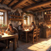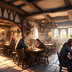 中世ファンタジー|城下町外れの大衆酒場|昼の賑わい(人物あり)|10枚セット