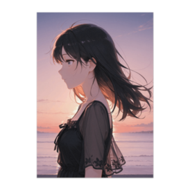 ポスター - B2この商品はpixivFACTORYで作られた商品です。サンプル画像は完成イメージのため、実物と異なる場合があります。 夕暮れの海辺で、風に揺れる黒いサマードレスをまとった女性を描いたイラストです。 髪とドレスの動きが、静かな中にも物語性を感じさせます。 大人っぽく落ち着いた雰囲気で、アートポスターとして飾りやすい一枚です。