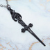 ブラックカラー ゴシック調ソード(剣)とコウモリのスリムなネックレス 長さ調整可 アジャスター可