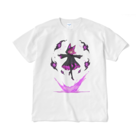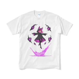 Tシャツ(短納期) - XL - ホワイトこのデザインは、ショートの鮮やかなピンクの髪と輝くマゼンタの目、そして無表情で少し冷たい印象を持つ若い少女を特徴としています。彼女は黒の印象的なマントを着ており、ピンクの縁取りの猫耳が付いています。その下には複雑で神秘的なシンボルが描かれた黒のスーツをまとい、それは秘められた力で光っているかのように見えます。動的なポーズと周囲に浮かぶ頭蓋骨やエネルギーの波が、力強いダークテーマの魔法少女や悪魔のキャラクターの理想的な参考資料となっています。 製品詳細: ファイル形式:PNG 解像度:3584 x 4608 ピクセル スタイル:ダークファンタジーアニメ