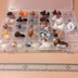 小さな羊毛フェルトのアクセサリートップ25個+ネックレス紐1本・イヤリング本体2個・ブローチ台座2個・リング2個のセットです。トップを自由に付け替えることができます。 アクセサリートップは磁石入りのものが15個と金具付きのものが10個です。素材は芯がウールで表面はアクリル繊維になっています。ひとつの大きさは小さいもので概ね3×2×2cmです。 リングには磁石入りのものをくっつけることができます。イヤリングは金具付きのものが装着可能です。ネックレスとブローチはどちらにも対応しており、両方を一緒につけることもできます。リングはフォークリング(オープンリング)タイプでサイズが調整できます。ネックレス紐は合皮製で45cm+アジャスター5cmです。 磁石の向きは揃えてあるので、おんぶさせることは可能ですが、お腹同士でくっつけることはできません。重ねた状態では磁力が落ちるのでアクセサリーとしての使用はオススメしません。 30マスのプラスチックケースに入れて発送します。ケースのサイズはB5より少し小さいくらいです。厚みは2cm程度です。 あまり丈夫な作りではありません。