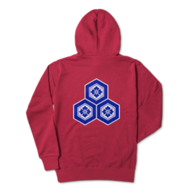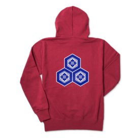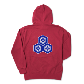 直江兼続 家紋 三つ盛亀甲に花菱 パーカー ワインレッドに青