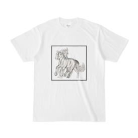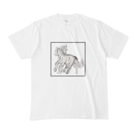 Tシャツ - XL - 白この商品はpixivFACTORYで作られた商品です。サンプル画像は完成イメージのため、実物と異なる場合があります。 馬のスケッチをTシャツにしました。 色は白のみです。