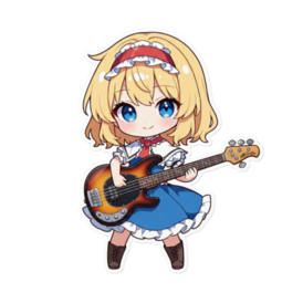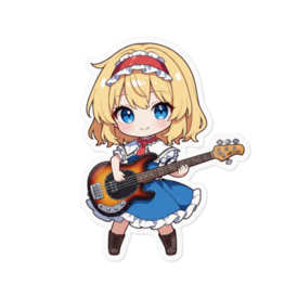 ステッカー - 160 x 160 (mm)(キャラのみ)【七色の人形遣いが刻む、至高の重低音(ベースライン)】 Gensokyo Rock'n'roll Carnival シリーズ:アリス・マーガトロイド 幻想郷で開催される狂乱のロックフェス「Gensokyo Rock'n'roll Carnival(GRC)」、次なるステージに現れたのはアリス・マーガトロイド。 指先で人形を操るその繊細な技術が、今は4本の弦を震わせ、観衆の心臓を揺さぶる重低音を紡ぎ出す! サンバーストのベースを構え、クールにステージに立つチビキャラのアリス。 彼女が刻むグルーヴが、バンドの音を一つに束ねます。 ★ コンセプト:あなただけの「幻想郷ドリームバンド」を編成せよ このシリーズは、お気に入りのキャラクターを自由に組み合わせてバンドをプロデュースできるコレクションアイテムです。 お気に入りのメンバーを並べることで、あなたの部屋が熱狂のフェス会場へと変貌します! この商品はpixivFACTORYで作られた商品です。サンプル画像は完成イメージのため、実物と異なる場合があります。