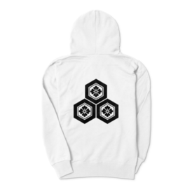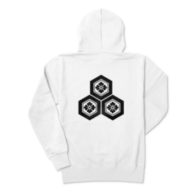 直江兼続 家紋 三つ盛亀甲に花菱 パーカー 白に黒
