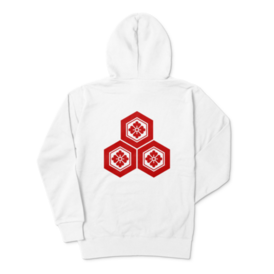 直江兼続 家紋 三つ盛亀甲に花菱 パーカー 白に赤