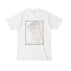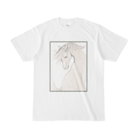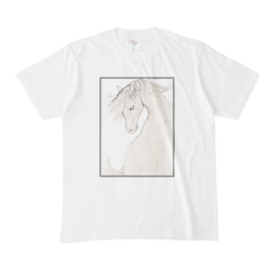 Tシャツ - XL - 白この商品はpixivFACTORYで作られた商品です。サンプル画像は完成イメージのため、実物と異なる場合があります。 白馬のスケッチをTシャツにしました。色は白のみです。 スケッチはpixabayにて公開されていた商用利用可能な画像を参考に描いています。