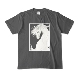 カラーTシャツ - XL - チャコール (濃色)この商品はpixivFACTORYで作られた商品です。サンプル画像は完成イメージのため、実物と異なる場合があります。 白馬のスケッチをカラーTシャツにしました。 スケッチは商用利用可能なフリー画像を参考にしています。