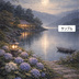 月灯りの紫陽花|日本絵画風・静夜の湖畔
