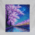 油絵【青い満月の夜桜】原画 油彩画 絵画 風景画 夜景 桜アート 春インテリア 壁掛け 一点物