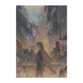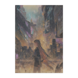 ポスター - B2この商品はpixivFACTORYで作られた商品です。サンプル画像は完成イメージのため、実物と異なる場合があります。 ネオンが輝く都市風景と女性のシルエットを、水彩油彩の質感を感じさせるアート風表現で描いたポスター作品です。光の粒子感や遠景の街並みが印象的で、幻想的かつスタイリッシュな雰囲気を楽しめます。 インテリアポスターとしても映える一枚です。