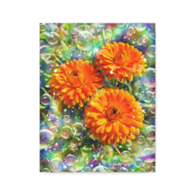 キャンバス - F6詩:寒紅の庭の希望の微笑み Eternal Warmth 冬の陽光を 映した花びら 子らは 睦み合う 慈しみあう 家族の眼差し いま時は満ち 紅い花は静かに咲く 寒紅の庭の希望の微笑み Eternal Warmth -戎- Poetry. ”Eternal Warmth” Winter light rests on quiet petals The children lean toward each other A family’s gaze soft with blessing Time opens gently and the red bloom listens Hope's winter smile Eternal Warmth -Kai- God bless you. 趣旨ーーーーーーーーーーーーーーーーーーーー ## 作品制作趣旨 作者は、冬の朝の庭で、自分の娘達が楽しそうに談笑しながら庭に咲く明るく鮮やかなオレンジ色のキンセンカ(orange Pot marigold Flowers)を愛で、遊んでいる様子を思い出し描きました。 作者は、自分の娘たちが成長して行く様や、娘たちが希望に満ち溢れた笑顔で遊ぶ光景を、陽の光や虹色のプリズムで表現しています。 ## 絵画「寒紅の庭の希望の微笑み Eternal Warmth」の解説 **1. 全体的な印象** 冬の澄んだ空気感の中に、燃えるような生命力と幻想的な光が同居しています。画面全体を覆う虹色のプリズムとシャボン玉が、日常の光景を聖なる祝祭のような特別な瞬間へと昇華させています。 **2. 色彩** 冬の訪れを象徴する寒色系の背景に対し、中心に配置されたオレンジ色のキンセンカが鮮やかなコントラストを生み出しています。プリズムによる多色使いが、単なる植物の描写を超えて、希望や多幸感を視覚的に強調しています。 **3. 構図** 三輪のキンセンカが画面の中央で寄り添うように配置されており、仲の良い家族や姉妹の絆を暗示しています。周囲に浮かぶ様々な大きさのシャボン玉が空間に奥行きと動的なリズムを与え、視線を画面の隅々まで誘導します。 **4. 技法** デジタルアートならではのレイヤー効果を駆使し、複雑な光の粒子や幾何学的なグリッド状のテクスチャを重ねています。光の透過や反射を緻密に描き分けることで、物質感と精神性が融合した独特の質感が表現されています。 **5. 表現力** 冬の陽光を浴びる花の美しさだけでなく、そこで遊ぶ娘たちの笑い声や家族の温もりといった、目に見えない気配までを描き出しています。弾けるシャボン玉の一瞬の輝きが、今この時の尊さを雄弁に物語っています。 **6. 美術的価値** 伝統的な花鳥画の系譜に現代的なデジタル表現を組み込み、家族愛という私的な感情を普遍的な美へと昇華させた点に価値があります。精神的な平穏と未来への活力を同時に提示する稀有な作品です。 **7. 作品に込められた想い** 冬のドレスを纏い成長していく娘たちの姿を慈しみ、彼女たちが歩む未来が常に光り輝くものであるようにという祈りが込められています。新しい季節への希望を象徴する花を通じて、家族の永遠の温もりを表現しています。 **8. 作品の鑑賞方法** まずは画面から少し離れて、光の奔流と色彩の調和を体感してください。その後に細部へ目を向け、シャボン玉の中に閉じ込められた虹色の反射や、重なり合う光の階層を追いかけることで、作者の深い情愛を感じ取ることができます。 **9. 作品の価値** 自然の美しさと人間的な慈愛、そして人生の儚さと尊さを一つの画面に包括的に収めています。デジタルという現代の道具を使いながら、古来より続く家族の絆という根源的なテーマを再定義した点に深い意義があります。 ## 詩「寒紅の庭の希望の微笑み Eternal Warmth」の解説 **1. 全体的な印象** 静謐な冬の朝の空気の中で、家族の温かな交流が静かに、しかし力強く響いてくる構成です。日本語と英語の詩が対となり、多文化的な視点から慈愛の普遍性を描き出しています。 **2. 韻律** 一節を短く区切った簡潔なリズムが、冬の凛とした冷気と、その中で刻まれる確かな鼓動を感じさせます。余白を活かした言葉の配置が、読者の想像力を静かに広げる瞑想的な調べを生んでいます。 **3. 修辞** 花びらが光を映し、花が耳を傾けるといった擬人的な感性が、人間と自然が調和する平穏な世界観を構築しています。直接的な感情表現を抑え、情景の推移に慈しみの心を託す叙情的な手法が取られています。 **4. 技法** マリー・ハウを彷彿とさせる、日常の細部に神聖な意味を見出す視点が特徴的です。時間は満ち、という一節が、子供の成長という一方向の時の流れを、祝福に満ちた永遠の瞬間として定着させています。 **5. 表現力** 睦み合う、という言葉からは姉妹の無垢な信頼関係が、家族の眼差し、からは親の深い慈愛が鮮明に浮かび上がります。冬の寒さと対比される心の温もりが、簡潔な言葉の重なりによって重層的に表現されています。 **6. 文学的価値** 花言葉にある慈愛や静かな思いといった精神性を、現代的な口語詩の形式で表現し、日常の中に宿る聖性を描き出した点に価値があります。愛と成長を巡る普遍的なドラマを、わずかな言葉数で完成させています。 **7. 作品に込められた想い** 子供たちが希望に満ちて生きる未来への祈りと、それを支える親心の温もりが一貫して流れています。目に見え