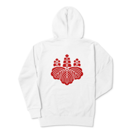 豊臣秀吉 豊臣秀頼 家紋 五七の桐 パーカー 白に赤