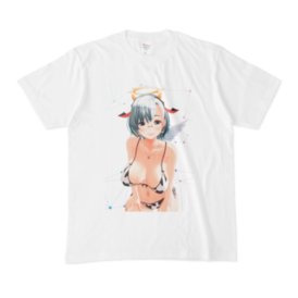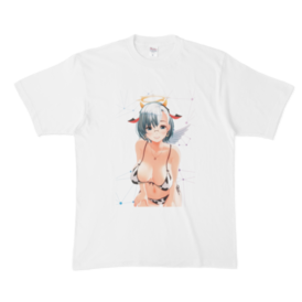 Tシャツ - XL - 白ママ女神VTuber 初瀬野リディムが健康的な牛柄ビキニで微笑むデザインのTシャツです。着心地抜群の優しい生地、女神の優しさで出来ています。 *この商品はpixivFACTORYで作られた商品です。サンプル画像は完成イメージのため、実物と異なる場合があります。