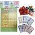 ゲーム紹介 生徒の感情を限られた語彙の中で表現しよう! ビンゴをうめて、勝利を掴もう 上手くいけば先生から褒めてもらえるかも?! ・対象年齢7歳以上 ・プレイ人数:3~6人 ・プレイ時間:20~40分 【内容物】 ・説明書(日本語のみ) ・ゲームボード1枚 ・ハートチップ80枚 ・得点チップ6色×14枚 ・お題カード10枚 ・語彙カード計200枚 -主語カード(裏面赤色)50枚 -述語カード(裏面青色)50枚 -修飾語カード(裏面緑色)100枚 ルール要約 1,先生(親)と生徒(子)を決め、生徒は語彙カードを複数枚引こう 2,先生はお題カードを引き、生徒は引かれたお題に沿う文章を手元の語彙カードで作ろう 3,先生は一番合っていた生徒から順にハートチップを渡そう 4, 集めたハートチップを払ってビンゴを埋めよう 5,最初にビンゴを完成させた生徒の勝ち!! クレジット 原案、ルール作成:武蔵野市立境南小学校 2024年度3年4組のみんな 調整、製品化協力:武蔵野大学ボードゲーム同好会いるでぃ