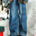 • XL・ダークブルー・ワイドストレートデニムパンツ