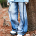 • XL・ライトブルー・ワイドストレートデニムパンツ