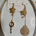 ハンドメイドピアス ゆめかわ猫 パープルピンクゴールド 星月 スワロフスキー 魔法少女 かわいい ガーリー