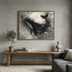 和のテイストを感じさせる、 大胆で力強い構図のクジラのアートです。 黒とグレーのグラデーションが織りなす深い世界観の中に、 散りばめられた金色の飛沫が高級感を演出しています。 落ち着いた色合いは、モダンなリビングから和室まで、 様々なスタイルのお部屋に馴染みます。 お部屋の主役になるような、存在感のある一枚です。