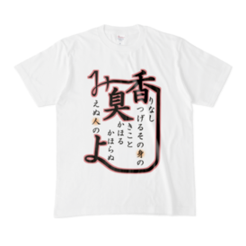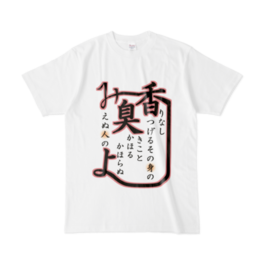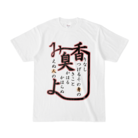 Tシャツ - XL - 白この商品はpixivFACTORYで作られた商品です。サンプル画像は完成イメージのため、実物と異なる場合があります。 香害で悩める心情を詠んだ和歌で主張するTシャツです。 それとなーく周知&布教するアイテム。