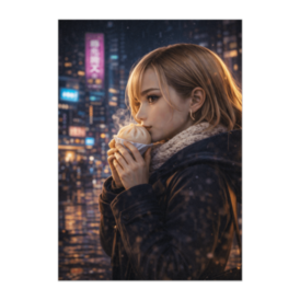ポスター - B2この商品はpixivFACTORYで作られた商品です。サンプル画像は完成イメージのため、実物と異なる場合があります。 ネオン輝く夜の都市で、温かい肉まんを手にした女性を描いたシネマティックポスターです。 冬の空気感と都会の光が溶け合う、映画ワンシーンのような雰囲気を楽しめます。 インテリアや季節ディスプレイにもおすすめのアート作品です。