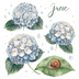 紫陽花・6月のイメージ クリップアートセット1 全41種 PING形式(背景透過)