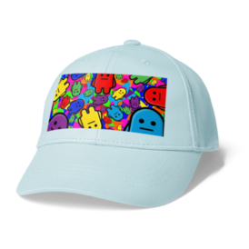 キャップ - ライトブルー世界に羽ばたくキャラクターIPの限定デザイン。周りの言葉や音や環境等に左右されず、自分に自信をもって生きていくというメッセージを込めた、MOというキャラクターの渾身の一作です。
