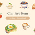 【背景透過PNG】カフェを彩る・水彩食材クリップアート10点セット