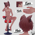 Special thanks to @IshimaruVr, @pom_pom_itai, @GussanVRC777, @Echo_HunterXzXz, @Eukynnie Follow them here: https://x.com/pom_pom_itai https://x.com/Echo_HunterXzXz https://x.com/Eukynnie https://x.com/GussanVRC777 https://x.com/IshimaruVR Zip file includes: + Lasyusha(Naki) - Face and Hair Textures ( 4x PNG ) - Face and Body Material ( x2 ) + Nakiya(Lasy) - Face, Eyes, and Hair Textures ( 7x PNG ) - Face and Body Material ( x2 ) Compatible Avatars: - Lasyusha 「ラシューシャ」 https://booth.pm/en/items/4825073 - Nakiya 「泣夜」 https://booth.pm/en/items/7924603 By Keenoo ( keenooshop.booth.pm ) Usage Terms: -This texture pack is provided for personal and non-commercial use. You are free to modify, edit, and use these textures in your own avatar projects, including streaming and social media content, as long as the following conditions are met: -Redistribution of the original or modified files is not permitted. -Commercial resale or inclusion in paid asset packs is strictly prohibited. -Credit is appreciated but not required when used in personal projects. These textures may not be used in any way that infringes on the rights of others or violates platform terms of service. By downloading this pack, you agree to these terms. Free to Modify A custom pattern set designed to bring personality and flair to your avatar. Whether you're customizing for style, storytelling, or just for fun, these textures offer a versatile foundation for your creative work. Use #PawPhase so I can see you work! Please note: The avatars shown in the previews is not included with this download. Featured avatars: Lasyusha (ラシューシャ) by Keenoo Available here: https://booth.pm/en/items/4825073 Nakiya (泣夜) Available here: https://booth.pm/en/items/7924603 Contact: https://twitter.com/ADisplacerBeast Thank you for your support. Updates (Newest To Oldest): =17/02= Published -