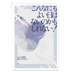 アクリルキーホルダー - 70 x 70 (mm)※この商品はpixivFACTORYで作られた商品です。サンプル画像は完成イメージのため、実物と異なる場合があります。 短歌「こんなにもよい日はないのかもしれない!たとえば首を吊るとするなら」のアクリルキーホルダーです。