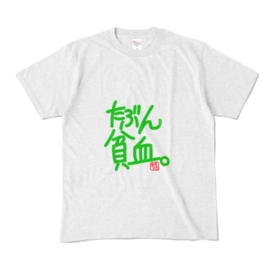 カラーTシャツ - XL - アッシュ (淡色)この商品はpixivFACTORYで作られた商品です。サンプル画像は完成イメージのため、実物と異なる場合があります。 イラスト(X)KaedE 様:https://x.com/kaede43000 多分貧血じゃない、絶対貧血な人が着るからこそ輝く Tシャツです。 シェノらきラジオでの迷言を気持ちを込めて 書かせていただきました。