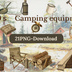 1920年代風、ヴィンテージキャンプ用品 クリップアート21点