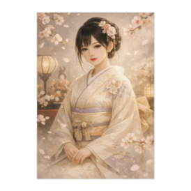 ポスター - B2この商品はpixivFACTORYで作られた商品です。サンプル画像は完成イメージのため、実物と異なる場合があります。 桜の花びらと柔らかな光に包まれた幻想的な和風ポートレート作品です。 春らしい優しい色彩と繊細な着物表現が、 穏やかでロマンティックな空気感を演出しています。 季節感のあるインテリアや和風アート好きの方におすすめです。