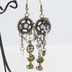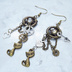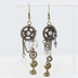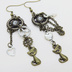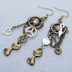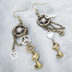 アンティークゴールド 猫と歯車のスチームパンク風アシンメトリーチェーンピアス スワロフスキー ハート