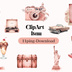 水彩ピンクのアンティーク旅行クリップアートセット(全11種類)