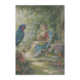 ポスター - B2この商品はpixivFACTORYで作られた商品です。サンプル画像は完成イメージのため、実物と異なる場合があります。 南国の花々と極彩色の鳥に囲まれた、 幻想的な花園の情景を水彩油彩風で描いたポスター作品です。 柔らかな光と自然の色彩が溶け合い、 癒しと華やかさを同時に感じられる幻想アートです。 お部屋のアクセントにもおすすめです。