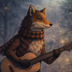 月明かりの森で奏でるキツネ -Fox Playing Guitar Under the Moonlit Forest