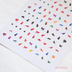 猫のシルエットイラストの転写ネイルシールです。 画面上、白地に見える部分は実際には透明になります。 貼り付けたときには、写真とは左右反転します。 猫のシルエットイラスト12種とそれを反転させたもの、猫の足跡のシルエットを収録、色にバリエーションをつけました。 全130ピース。 絵柄ひとつのサイズ 5×5mm程度。足跡は2.5×2.5mm程度。 ネイルに貼り付けることを想定したサイズにしてありますが、それ以外にも肌に貼ってタトゥーシールにしたり、プラスチックや金属など表面がなめらかなものに貼り付けたり、レジンに封入したりとさまざまな活用ができます。 必要な部分を切り取り、透明フィルムをはがして貼り付け、濡れたティッシュやコットンで湿らせてから紙をすべらせてはがしてください。 爪に貼った場合、トップコートを塗るときれいに仕上がります。 【素材】 市販の転写シール 透明タイプ 【サイズ】 幅100×高さ148mm 【購入の際の注意点】 表面の粗いものにはきれいに転写できません。 色の濃いものに貼り付けると、地の色に負けてシールの色が目立たくなってしまうので、白または薄い色の上に貼ってください。 水を使って転写させるため、紙など水に弱いものには転写できません。 肌に転写した場合は一日を目安にはがしてください。 シートは湿気を吸いやすい性質があるので、なるべく早めにお使いください。