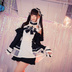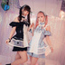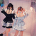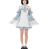 Jillpunk 水色 量産型 ゆめかわ ロリータ 天使の契約 ハイネック 肩出しドレス 透け透け リボン付き 長袖シャツワンピース+ショートパンツ メイド服セット オリジナル 可愛い おしゃれ ファッション萌え 秋葉原