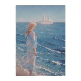 ポスター - B2この商品はpixivFACTORYで作られた商品です。サンプル画像は完成イメージのため、実物と異なる場合があります。 水平線の向こうを進む客船を見つめる少女。 穏やかな海とやわらかな光が広がる、 静かな余韻を感じる一枚です。 水彩と油彩が混ざり合う質感が、 透明感のある海の世界を美しく演出します。