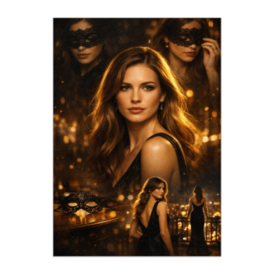 ポスター - B2この商品はpixivFACTORYで作られた商品です。サンプル画像は完成イメージのため、実物と異なる場合があります。 仮面の夜から素顔の余韻までを ひとつの物語として表現した 映画ポスター風の統合アート作品です。 黒のドレスとゴールドの光が印象的で、 ミステリアスさと上品さを両立した シネマティックな雰囲気が魅力です。 インテリアアートやコレクション作品としても 存在感のある一枚です。