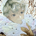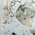 オリジナル 手描きイラスト 男の子 青年 「わたがしのマフラー」 正方形サイズ 透明水彩