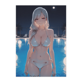 ポスター - B2この商品はpixivFACTORYで作られた商品です。サンプル画像は完成イメージのため、実物と異なる場合があります。 月明かりに照らされたナイトプールをテーマにしたポスター作品です。 柔らかな光と水面の輝きが、上品で透明感のある雰囲気を演出。 落ち着いた美しさとリラックス感を楽しめるインテリアアートです。