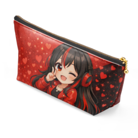 ポーチ - 長さ21.5cm / 高さ10cm - ブラックあつきを象徴する“レッド×ブラック”の世界観をそのまま落とし込んだ、公式シグネチャーポーチ。 落ち着いた赤黒グラデーションに、さりげなく散りばめたハート。 ワンポイントにあつきのサインが上品に映える、シンプルで使いやすいデザインに仕上げました。 普段使いのコスメポーチとしてはもちろん、 ペンケースや小物入れとしても活躍するちょうどいいサイズ感です 𓏸本体サイズ 約 高さ10cm × 幅21.5cm × マチ6cm 𓏸素材 外側:レザー(合皮) 内側:ナイロン生地(ベージュ/ブラック) 𓏸ファスナー周辺 ブラック 𓏸ファスナー 金属(ゴールド) 𓏸印刷方式 UVインクジェット印刷 この商品はpixivFACTORYで作られた商品です。サンプル画像は完成イメージのため、実物と異なる場合があります。