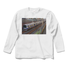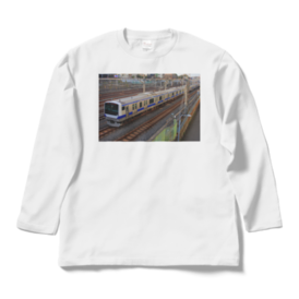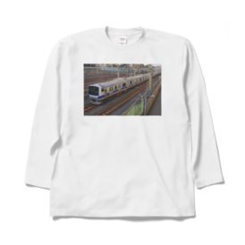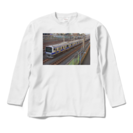 ロングスリーブTシャツ - XL - ホワイトJR東日本常磐線快速のE531系です。鉄道写真家がデザインしたオリジナルTシャツです。是非お買い求めください。この商品はpixivFACTORYで作られた商品です。サンプル画像は完成イメージのため、実物と異なる場合があります。