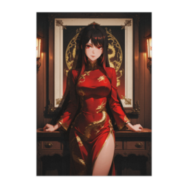 ポスター - B2この商品はpixivFACTORYで作られた商品です。サンプル画像は完成イメージのため、実物と異なる場合があります。 深紅のチャイナドレスに金の龍刺繍が映える、大人の気品あふれる一枚。 落ち着いたまなざしと洗練された佇まいが、空間に静かな存在感を与えます。 クラシカルな東洋モチーフと重厚な色彩が融合した、エレガントなアートポスターです。