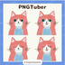 Veadotube対応 絵本風ピンク猫 PNGTuber素材 - 4表情セット / Watercolor Pink Cat PNGTuber
