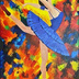 A vibrant acrylic painting by Mary G titled "The Blue Symphony." The artwork features a graceful ballerina in a brilliant blue tutu, captured in a dynamic pose. Set against a background of energetic and colorful brushstrokes in shades of orange, red, and yellow, the piece captures the rhythmic beauty and passion of dance. =================================================== Mary Gによる「The Blue Symphony(青い交響曲)」と題された鮮やかなアクリル画。ダイナミックなポーズをとる、鮮やかな青いチュチュを身にまとった優雅なバレリーナを描いています。オレンジ、赤、黄色のエネルギッシュで色彩豊かな筆致の背景の中で、ダンスのリズミカルな美しさと情熱を捉えています。