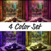 01_中庭テラスティータイム背景|静かで癒しの空間(4色セット)